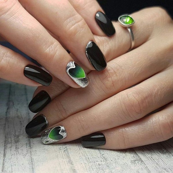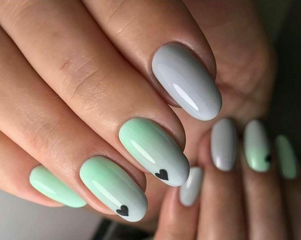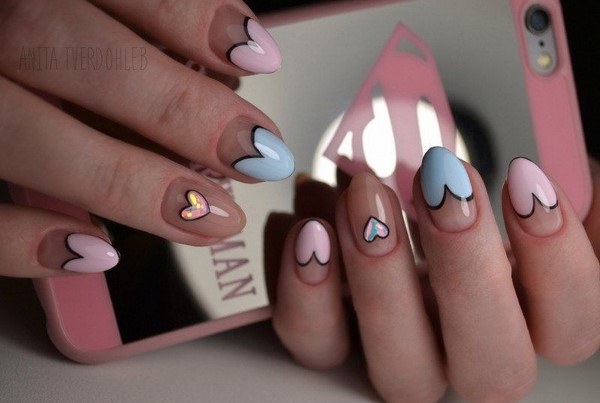 Додати легкість у модний серцевий дизайн нігтів допоможе «негативний простір», що дозволить одночасно створити потрібний акцент і при цьому не переутяжелить нейл-дизайн. Прозорі сердечка на кольоровому тлі або навпаки – яскраві сердечка прозорому покритті будуть дуже ефектні і привабливі.