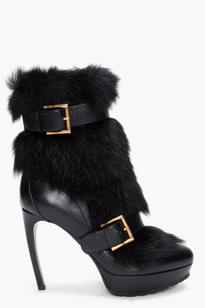 Класичний чорний актуальний завжди, як і мінімалізм в дизайні. Чорні ботильйони на хутрі — must have в гардеробі кожної дівчини. Така модель стане в нагоді і на роботі і для виходу в світ. Дизайнери по-різному обіграли чорні ботильйони. Зокрема, Roland Mouret, Saint Laurent вибрали металеву фурнітуру і зробили жіночі ботильйони кілька грубуватими за рахунок ланцюгів, заклепок і шипів.
