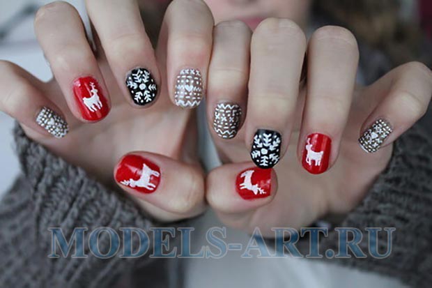 Так полюбилася багатьом дівчатам дизайн нігтів з ефектом «в’язки», буде в моді в січневі та лютневі будні 2017 року. Цей рельєфний візерунок найбільше підходить для коротких нігтів і асоціюється із затишком і теплом новорічних святкових днів, тому найбільш актуальним в холодному сезоні. Але крім ромбів і кісок, можна малювати сніжинки, сніговиків, голки ялинок і новорічні іграшки. Постарайтеся не вставляти в малюнок відразу всі елементи. Слідуйте стилю мінімалізм і дотримуйтеся певної тематики, малюючи на коротких нігтях. В кінці кінців, ви створюєте не натюрморт! Скористайтеся зимової часом, щоб застосувати всі блискітки і прикраси для манікюру, які у вас збереглися з минулого року. Адже це час, коли блиск і лоск на нігтях найбільш актуальні і доречні.