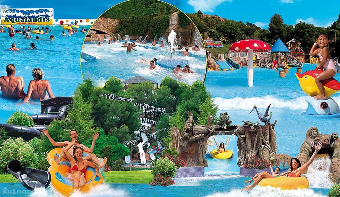 Скелі, водоспади, водні спуски аквапарку Акваландія в Бенідормі змагаються – хто вищий? Тут в наявності весь набір того, що потрібно для активного відпочинку: лихі повороти Black Hole, гірка для цілої компанії Splash, швидкісний спуск Rapidos і багато іншого.