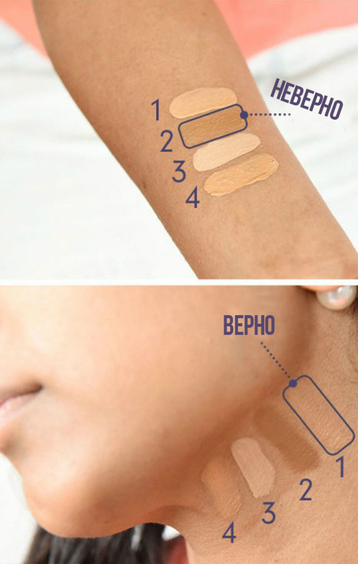 • Правильно вибраний тональний крем — вважай, половина справи зроблена! Помилково вважати, що тон повинен збігатися з відтінком шкіри на зап’ясток. Шия — ось де слід тестувати тональні засоби.