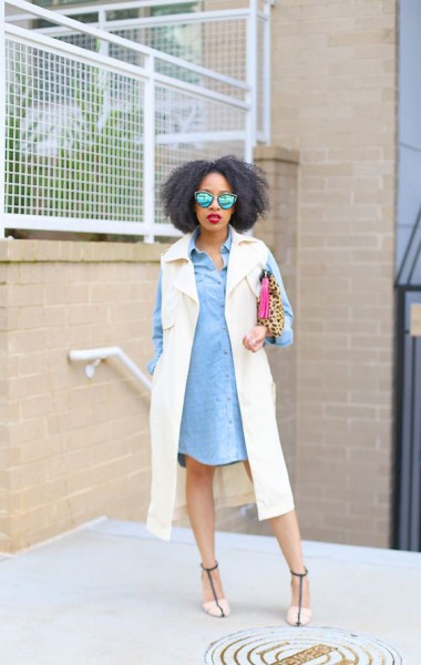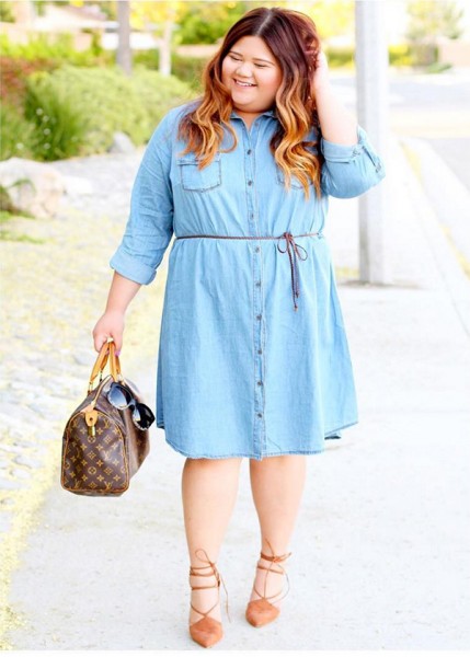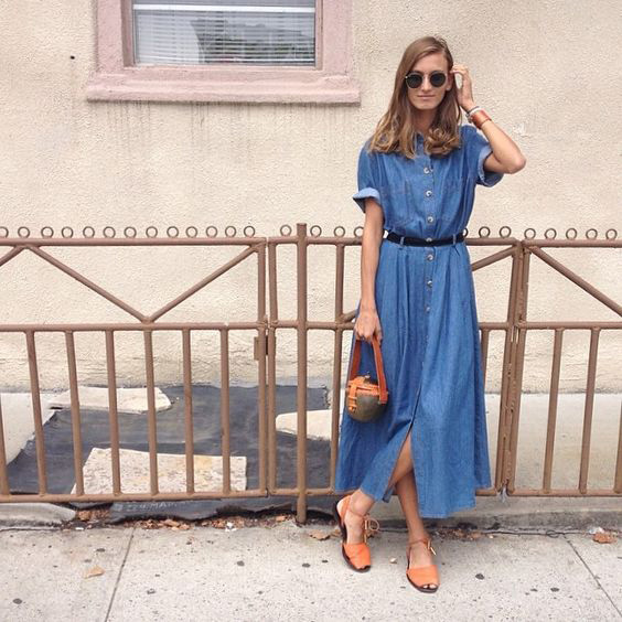 12. Вільний джинсове плаття-сорочка — це класика, але якщо ви хочете додати небагато форми, просто пов’яжіть тонкий поясок.