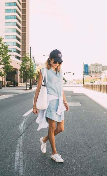 3. Бейсболка і кросівки зроблять будь джинсове плаття більш повсякденним і комфортним.