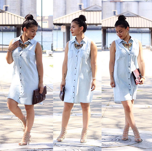 Джинсове сукню багатогранно і легко для поєднання з іншими речами — ви можете носити його одне з сандалями в теплий день, чи можете одягти поверх сукні якийсь светр і, в поєднанні з колготками, будете почувати себе досить комфортно.