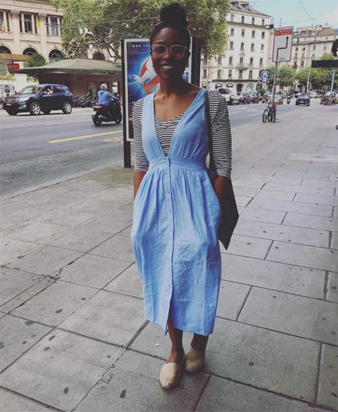 10. Шкіряні туфлі без каблука і симпатичний чокер перетворює сукню з повсякденного-нудного у повсякденне-улюблене.
