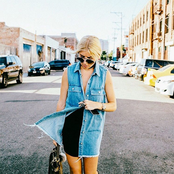 16. Використовуйте ваш джинсове плаття-сорочку без рукавів замість сукні, залишивши його розстебнутим і надівши поверх іншого сукні.