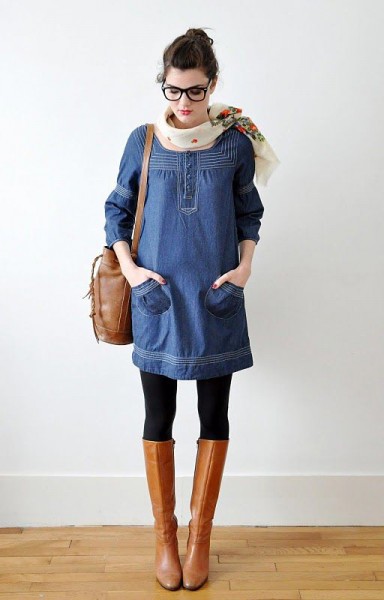 11. По мірі того, як погода стає холодніше, ви можете носити ваше літній джинсове сукню поверх сорочки або футболки з довгим рукавом. Особливо круто виглядає в парі з смугастої сорочкою.