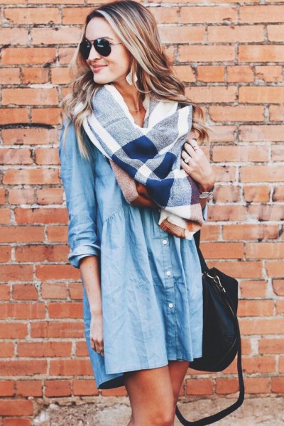 4. У прохолодний осінній день затишний вовняний шалик зробить літній джинсове плаття більш теплим.