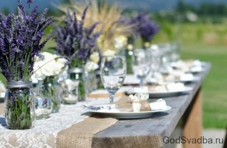 Для створення атмосфери свята можна прикрасити стіл лавандовими аксесуарами.