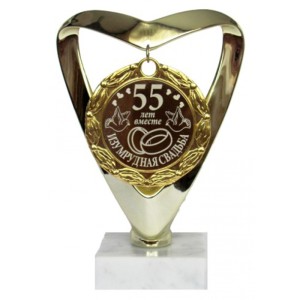 Тому оптимальним варіантом на 55 років спільного життя є ювелірна прикраса, у якому присутній смарагд. Ювілярам напевно буде неймовірно приємно отримати в подарунок підвіску, кільце, шпильку для краватки, браслети та інші ювелірні вироби, в яких присутній настільки розкішний камінь, як смарагд.