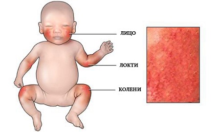- Діатез: висип і почервоніння (в першу чергу проявляється на щоках і сідницях);