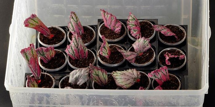 Багато садівники часто цікавляться, як розмножити бегонію і виростити її? Посадку рослини здійснюють бульбами і насінням розмножують вегетативним способом – діленням куща, живцями стебел і листя. Найпоширенішим розмноженням є живцювання. Цей спосіб використовують навесні і влітку: стебловий держак повинен бути не менше 7 см, посадковий матеріал відразу після зрізу треба висадити в зволожений субстрат. Контейнер з живцями поставити в темне місце. Через 60 днів рослина вкорениться і можна розсадити.