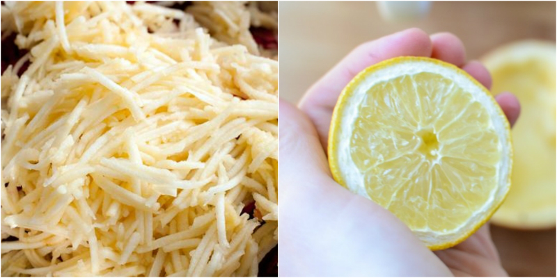 Яблука очистити, нашаткуй тонко або наріж дрібними кубиками. Скропи лимонним соком.