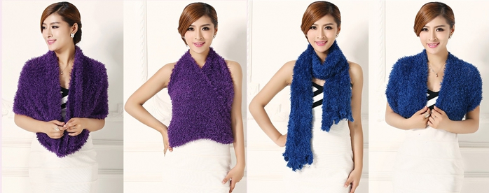 Цей диво-аксесуар одним рухом руки може легко перетворюватися… снуд, сукню, спідницю, болеро, жилет, шапку-капор… і ще море варіантів, наскільки у вас вистачить фантазії! Кажуть, шарф винайшли японці, і в це охоче віриться, так як японці готові на самі незвичайні і різноманітні вигадки.