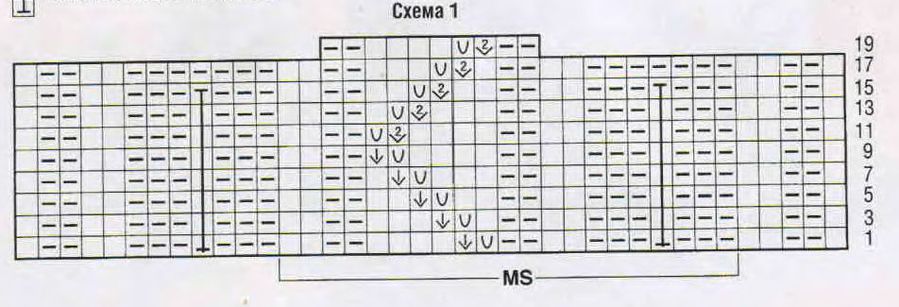Візерунок з листя і зигзагів слід в’язати відповідно до схеми 1: