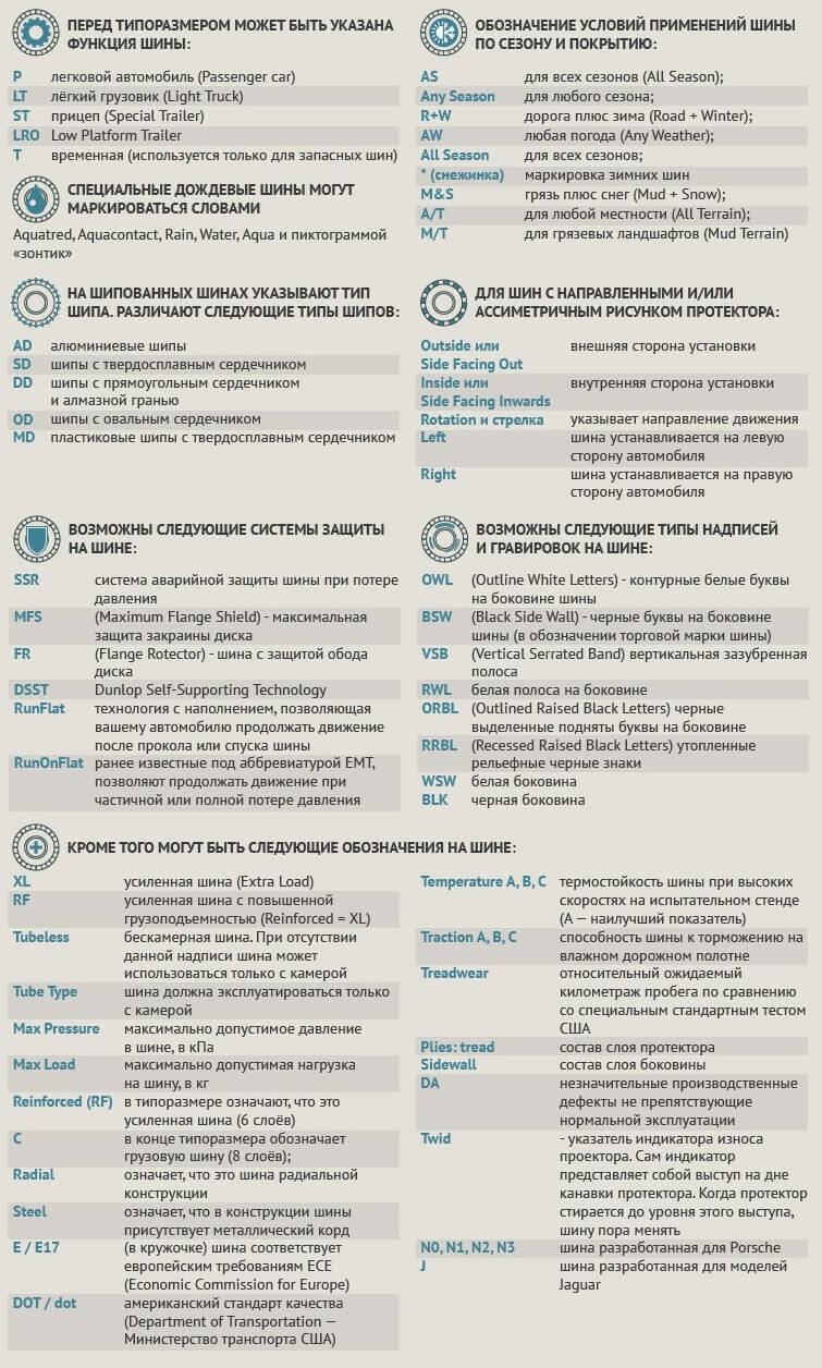 Розшифровка маркування гуми