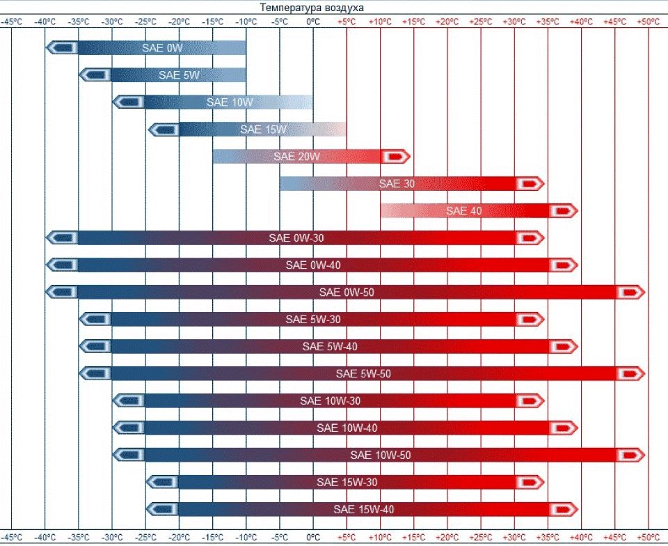 Таблиця залежності в’язкості масла SAE від температури повітря