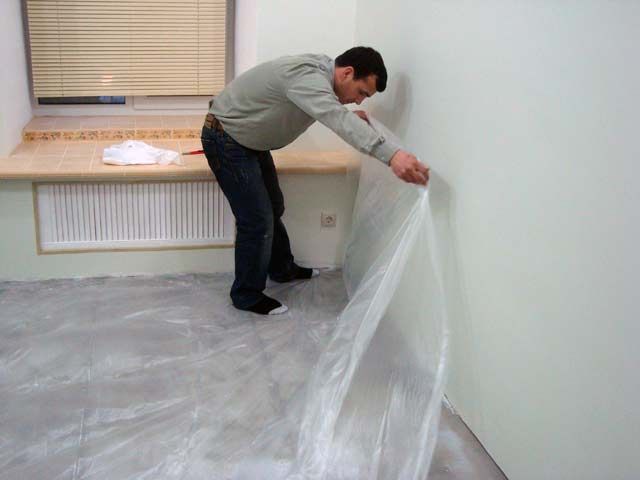 УВАГА! Щоб уникнути можливого забруднення підлогового покриття, рекомендується застелити лінолеум плівкою. Для захисту стиків і кутів нагоді малярний скотч.