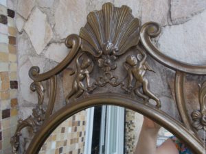 - виконуючи декорування великими об’ємними предметами потрібно бути готовим до того, що в результаті дзеркало загубиться на тлі прикрас;