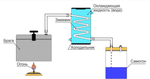 Самий примітивний самогонний апарат працює за технологією: испарили — охолодили — конденсировали — зібрали.