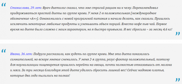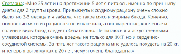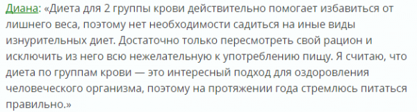 Деякі люди не помітили ніякого ефекту від дієти по групі крові 2 позитивною. Таблиця продуктів для жінок, відгуки про яку також суперечливі, не дає бажаного результату. Дотримуючись всіх рекомендацій американського фахівця, люди не відчули змін ні у вазі тіла, ні в самопочутті.