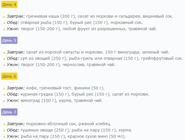 4. Фрукти – обов’язково повинні вживатися в їжу. Соковиті і солодкі фрукти, що містять велику кількість вітамінів, потрібно обов’язково внести в список продуктів. Під забороною банани і апельсини, доведеться також відмовитися від мандаринів;