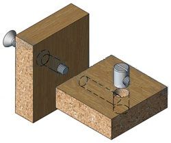 Бочонок встановлюється попередньо высверленное отвір. Тут слід розрахувати, наскільки потрібно відступити для отвору від краю, щоб потім вистачило робочого ходу гвинта для надійного з’єднання. Складність даного кріплення полягає в суміщенні отвори барильця з відповідною частиною гвинта, особливо для непрофесіоналів.