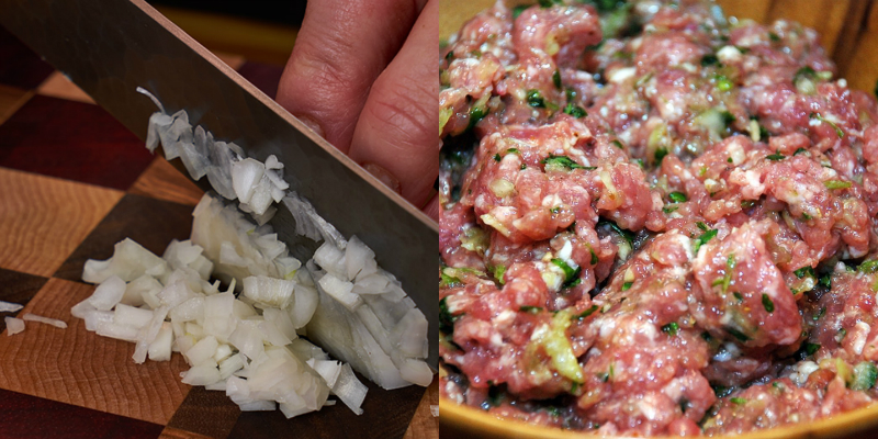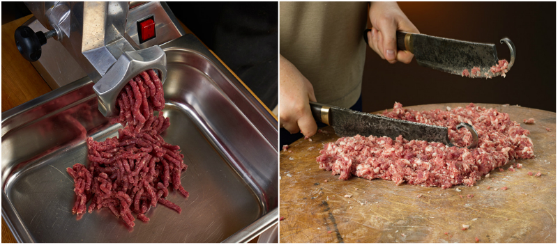 Насамперед потрібно очистити м’ясо від всіх непотрібних плівок і жилок. Підготовлене філе можеш пропустити м’ясо через м’ясорубку або ж віддати данину традиції і порубати м’ясо вручну. Майстри стверджують, що так кебаб виходить смачніше!