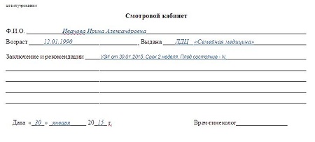 Якщо перша довідка більше актуальна для працюючих жінок, то друга необхідна всім, без винятку вагітним. Цей документ оформляється традиційно в 30 тижнів, після проведення додаткового обстеження пацієнтки. Дану довідку необхідно надати у відділ кадрів, якщо майбутня мама офіційно працевлаштована, або в регіональні органи соціального захисту для оформлення декретних посібників і наступних виплат по народженню дитини.