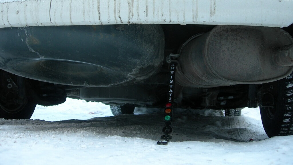 «Хвіст» — це найпростіший метод профілактики виникнення іржі. Це смужка гуми з прикріпленими металізованими елементами. Він кріпиться на задній частині транспортного засобу таким чином, щоб звисати та створювати різницю потенціалів між машиною та мокрим покриттям дороги.