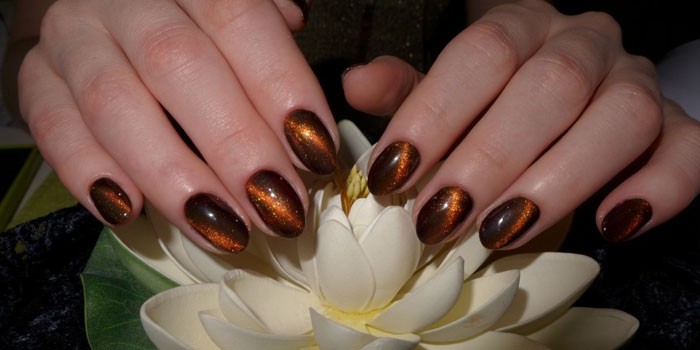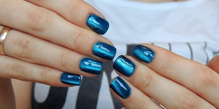 Приголомшливий, незвичайний ефект створюється за допомогою лаків зі спеціальною формулою і магніту. Нігті з незвичайним дизайном виглядають об’ємно, стильно, зовні нагадують котяче око – камінь з характерним вузьким відблиском в середині. Завдяки блискіток, що містяться в косметичному засобі, утворюється потрібний малюнок, чудово відображає світло. Дизайн нігтів з Котячим оком виконується просто, тому його можна створювати в домашніх умовах. Для досягнення кращого результату манікюр рекомендується робити у професіоналів.