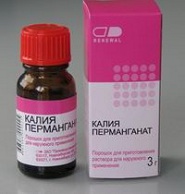 «Марганцівка». У список необхідних речей марганцівка обов’язково включена, вона використовується для щоденного догляду за пупковою ранкою малюка. Перше купання новонародженого відбувається в розчині рожевої марганцівки. При використанні марганцівки необхідно дотримуватися обережності. Кристалики препарату розчиняються у воді і треба стежити, щоб вони повністю були розчинені. Нерозчинений кристалик препарату при зіткненні з шкірою немовляти може викликати серйозний опік.
