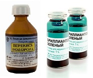 Перекис водню та «зеленка». Дані медичні препарати використовуються для щоденної обробки пупкової ранки у новонародженої дитини. Зробіть із вати турундочку і умочіть її в перекис або зеленку. тільки не закапайте себе або малюка.