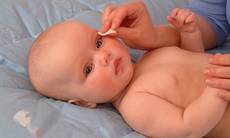 - Очі дитини промиваються по черзі, при цьому використовується кожен раз чиста ватка. Руху ваткою, змоченою у воді, починають від зовнішнього краю ока, а потім рух «йде» до внутрішнього краю.