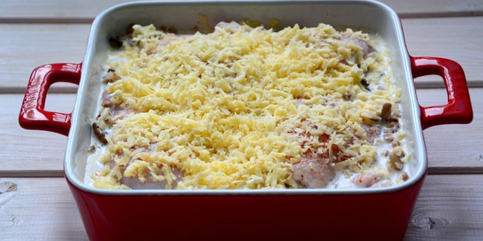 Дуже ароматною і соковитою виходить гречка з куркою в духовці під сиром, чия скоринка зберігає всі соки всередині страви. Для приготування можна брати будь-сир чеддер, моцарелу, класичний російський. Щоб посилити вершковий смак, всередину можна покласти сирний сир, який додасть каші м’якість і приголомшливий аромат. Пікантності страві додає приправа хмелі-сунелі, яку кладуть за смаком.