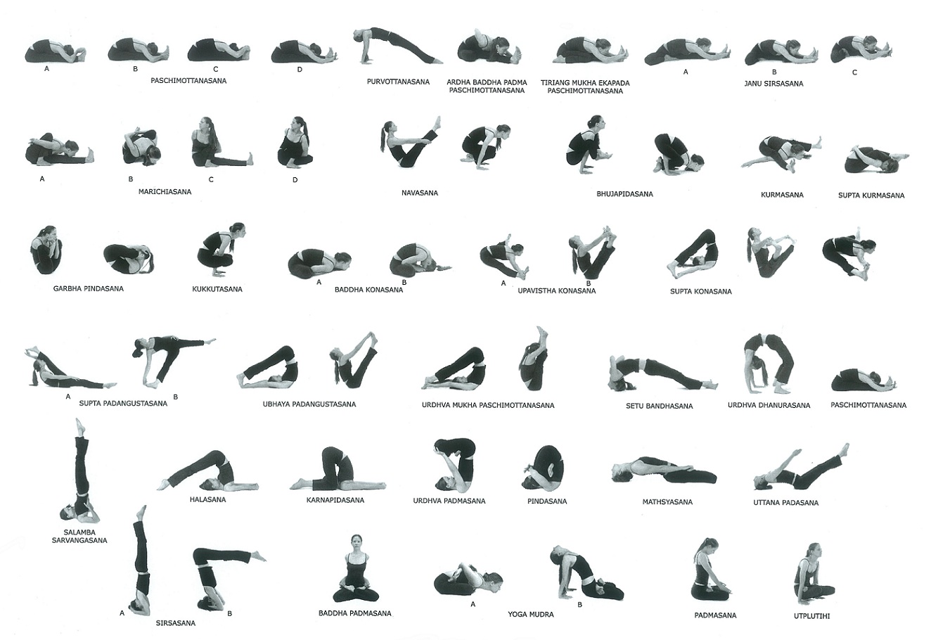 - Усунення наслідків сидячого способу життя». Як відомо малорухливий і сидячий спосіб життя призводить до утворення різних недуг — остеохондроз, варикозне розширення вен, біль у шиї та спині. Вправи допомагають зняти напругу «важкого дня, розігріти м’язи і забезпечити норму кровотоку до органів. Асани є профілактикою ниркових захворювань, так як вправи сприяють усуненню набряків після тривалого перебування тіла в одній позі (робота за комп’ютером тощо).