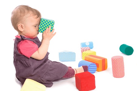 Дії руками стають більш складними: тепер малюк вміє перекладати предмет з однієї ручки в іншу, стукати одним предметом по іншому. Продовжує розвиватися мова і активно проявляється лепет – повторення вже не окремих звуків, а цілих складів.