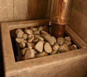 Форма і розмір. Як вже говорилося на початку статті — вони повинні бути габаритними, масивними і потужними. Якщо брати для кам’янки, то потрібно округлий вигляд і гладка поверхня. За такими параметрами можна сказати про високої опірності до зародження пошкоджень. Це буде сприяти найбільш кращої циркуляції, ніж шорсткі види. Що стосується другої характеристики — розміру — так це від п’яти до двадцяти сантиметрів. Названий показник буде ідеальним для лазні.ДОВІДКА. У нижню частину можна покласти варіант подешевше, а на верхню — найкрасивіші. Тим самим буде здійснюватися дві функції — швидке нагрівання і декоративний ефект.