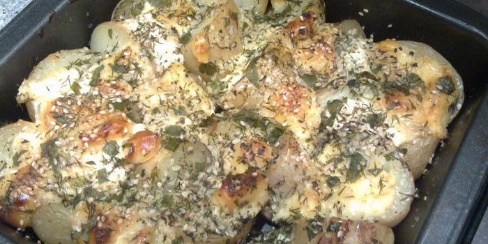 - Щоб не вийшло засохлого верхнього шару, картопля в духовці з сиром може бути накрита фольгою в перші 20-30 хвилин запікання.