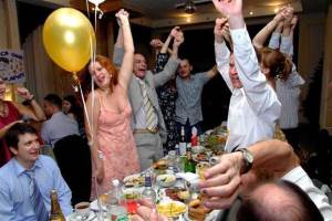 - При маленькій площі святкового столу і великій кількості запрошених гостей не потрібно робити конкурси, які викликають численні рухи.