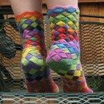 А ось, наприклад, дуже незвичайна і красива техніка печворк, знаєте таку? Її ще називають клаптикове шиття. А ось такі незвичайні ексклюзивні шкарпетки ви зможете зв’язати спицями, такий малюнок в стилі печворк з допомогою наших схем і опису стануть для вас справжньою родзинкою.