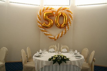 Для додання більшої святкової атмосфери прикрасьте своє житло в золотий колір, тобто якимись прикрасами такого відтінку та кольору. Це можуть бути стрічки, квіти. Нехай у підготовці святкування будуть залучені і діти, і онуки “золотих” “молодят”. Кожен з точки свого зору може подати будь-яку доречну і правильну ідею. Так вони зможуть допомагати не тільки в оздобленні квартири або будинку, але і приготують святкові страви, візьмуть участь у складанні сценарію, конкурсах.