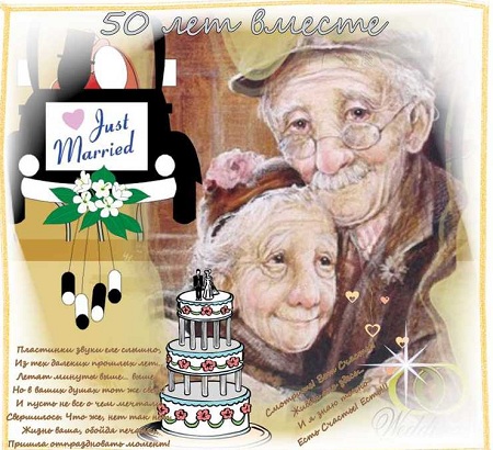 Щоб допомогти Вам з цим завданням, хочемо запропонувати кілька варіантів привітань з золотим весіллям, які Ви зможете використовувати у своєму зверненні або ж взяти кілька фраз, думка і на основі їх придумати що-небудь своє.