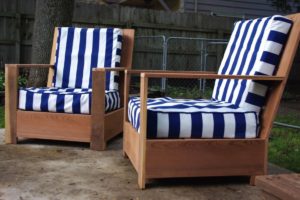 • Захист від негативних впливів навколишнього середовища. Тривале знаходження меблів під дощем або прямими променями сонця може значно погіршити первісний вигляд виробу. Підготовчі роботи по захисту починаються на перших етапах виготовлення. Добре просушена деревина – запорука успіху. Якщо матеріал спочатку поганої якості, просушіть дерево. Відшліфуйте, обробіть антисептиком і оліфою заготовки. На останньому етапі, після просушування зібраного крісла, його потрібно покрити лаком.