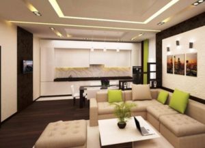 Якщо ламінат яскраво-коричневий, то і меблі варто підбирати яскравих контрастних кольорів.Головне в оформленні інтер’єру не переборщити, а підкреслити потрібні деталі. Тому не варто захоплюватися одним кольором, але і не використовувати всю колірну гамму.