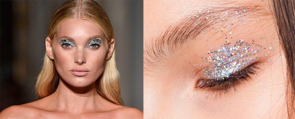 Гліттер, блискітки зроблять будь-який образ незабутнім і виділяється з натовпу. У продажу є як маленькі блискітки, які можна приклеїти в області під оком, так і великі виділяються глітер. За допомогою другого варіанту часто створюються макіяжі на весілля та інші урочистості. Перші ж варіант підійде для офіційних, але в той же час святкових подій.