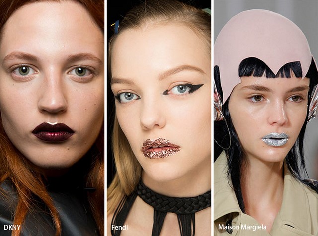 У створенні ідеального образу важливу роль відіграють правильно оформлені декоративною косметикою губи. Так як наступні кілька сезонів в 2018 році явно будуть популярні виділяються кольору, стилісти радять придивитися до ягідним відтінкам губних помад. Минулого року дівчата віддавали перевагу природній красі особи і макияжам в еко-стилі. Диктатори моди пропонують продовжити цю тенденцію, нафарбувавши губи темним ягідним або бордовим кольором, а решта особа залишивши без косметики. Це додасть родзинку вашому образу і допоможе виділитися з натовпу.