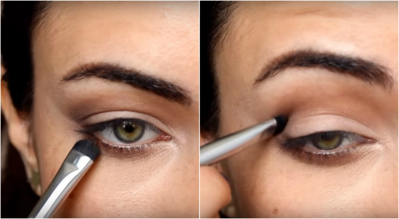 По нижньому століттю пройдися самим темним коричневим відтінком тіней, їм же постав наголос у зовнішньому куточку ока.