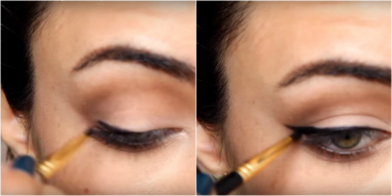 Час малювати стрілки. Тут головне, щоб рука не здригнулася! Пензликом з коричневими тінями злегка пройдися по висохлій стрілкою, щоб пом’якшити лінію.