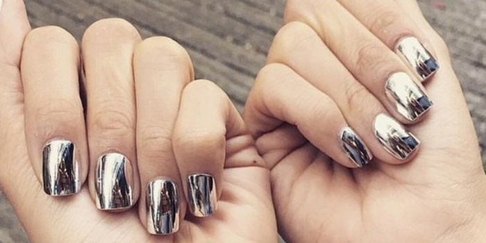 Ефектно виглядають у святковому оформленні нігті з дзеркальним сяйвом. Для здійснення ідеї знадобиться спеціальний клей та фольга – срібляста, золота або чорна. Як покроково виконати дзеркальний манікюр в домашніх умовах? Спочатку потрібно зробити ідеальну гігієнічну обробку нігтів – на пластині виключені шорсткості. Далі, потрібно: